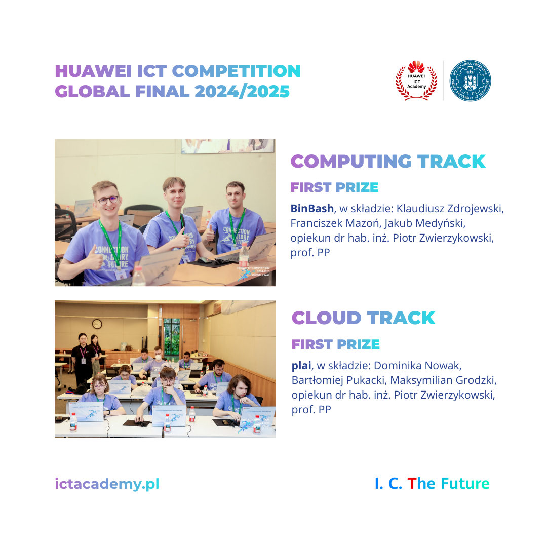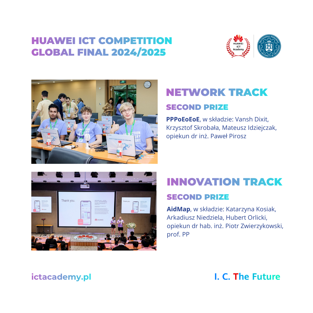 23 maja 2024 w Shenzhen w Chinach odbył się światowy finał konkursu Huawei ICT Competition, w którym rywalizowały najlepsze zespoły studenckie z całego świata. W gronie finalistów znalazły się dwie drużyny z Politechniki Poznańskiej, które zdobyły miejsca na podium: